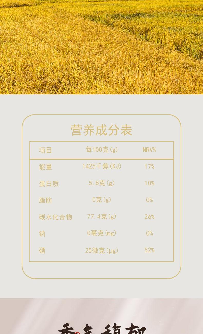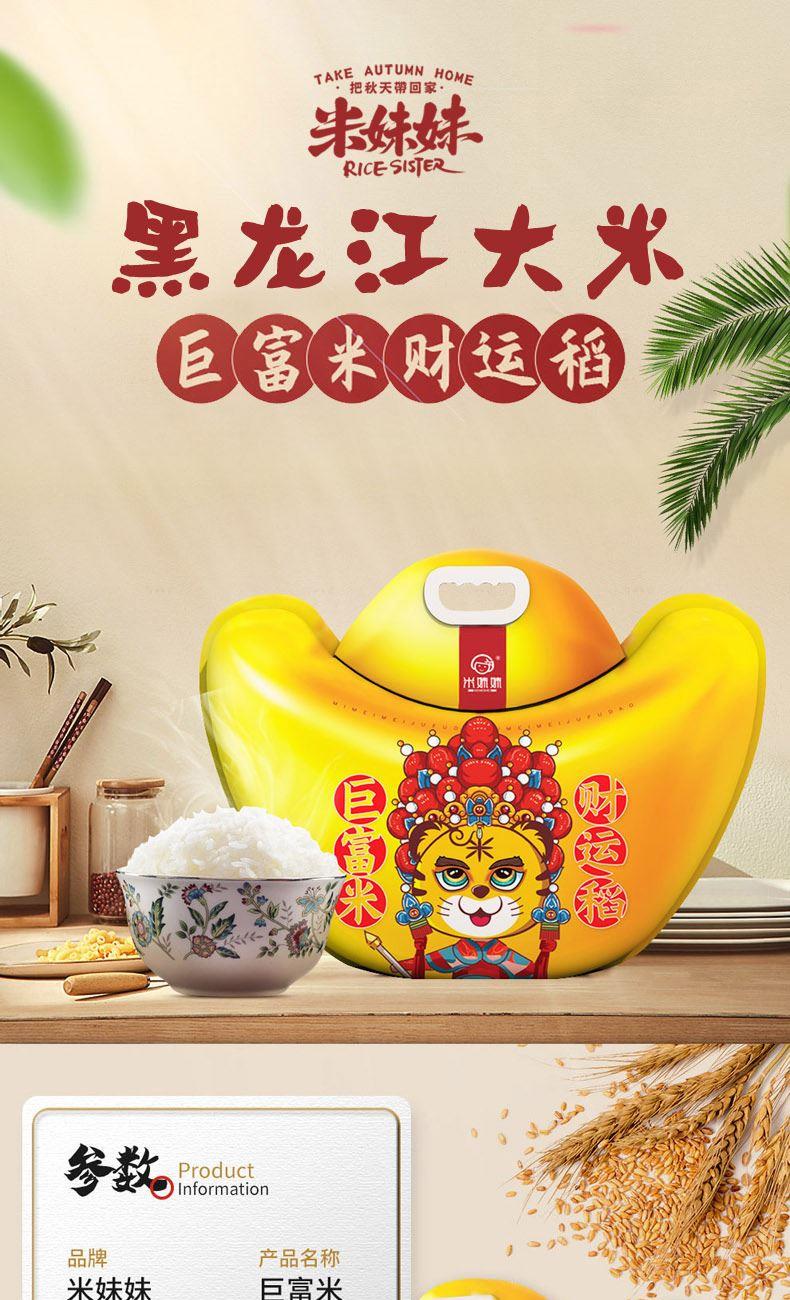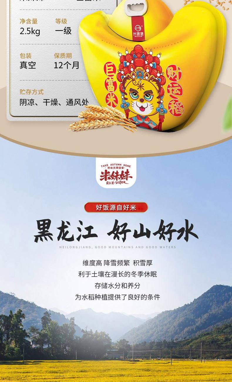 1 源自黑龙江肥沃黑土。 2 古法耕种,人工除草除虫。 3 国风风格设计,国潮担当。 4 糯香微甜,口感细滑,营养丰富,富硒。 5 财运稻,财气满满、财运高升。