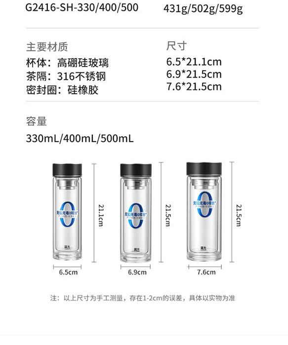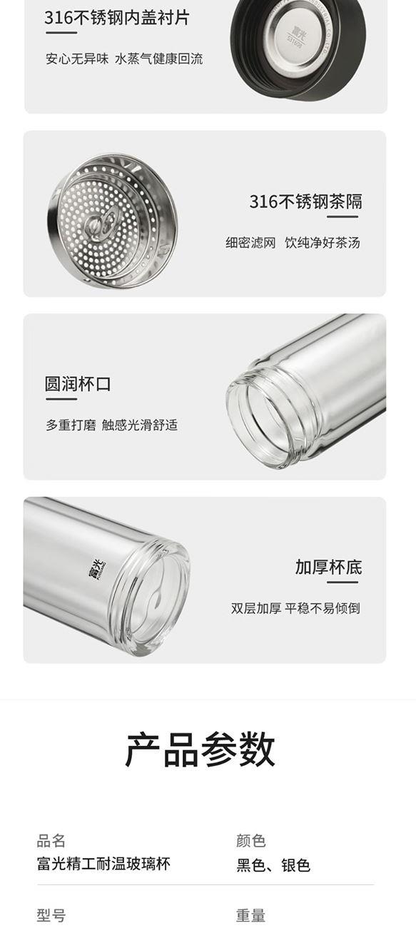 容量:330ml 颜色:钢本色 黑色 重量:431g 尺寸:65*210mm 材质:316不锈钢滤网,316不锈钢回流,精密细孔,提篮设计易拿取。 高硼硅玻璃材质,纯手工烧制加厚杯底,经久耐用。 包装:单瓦盒