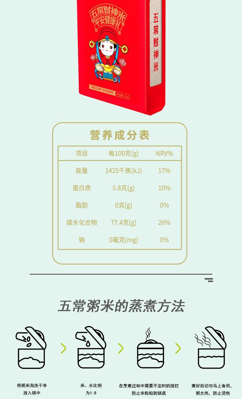 1 源自黑龙江肥沃黑土。 2 古法耕种,人工除草除虫。 3 国风风格设计,国潮担当。 4 糯香微甜,口感细滑,营养丰富。 5 财神到,财气满满、财运高升。