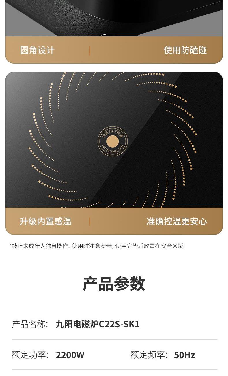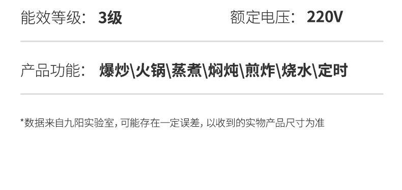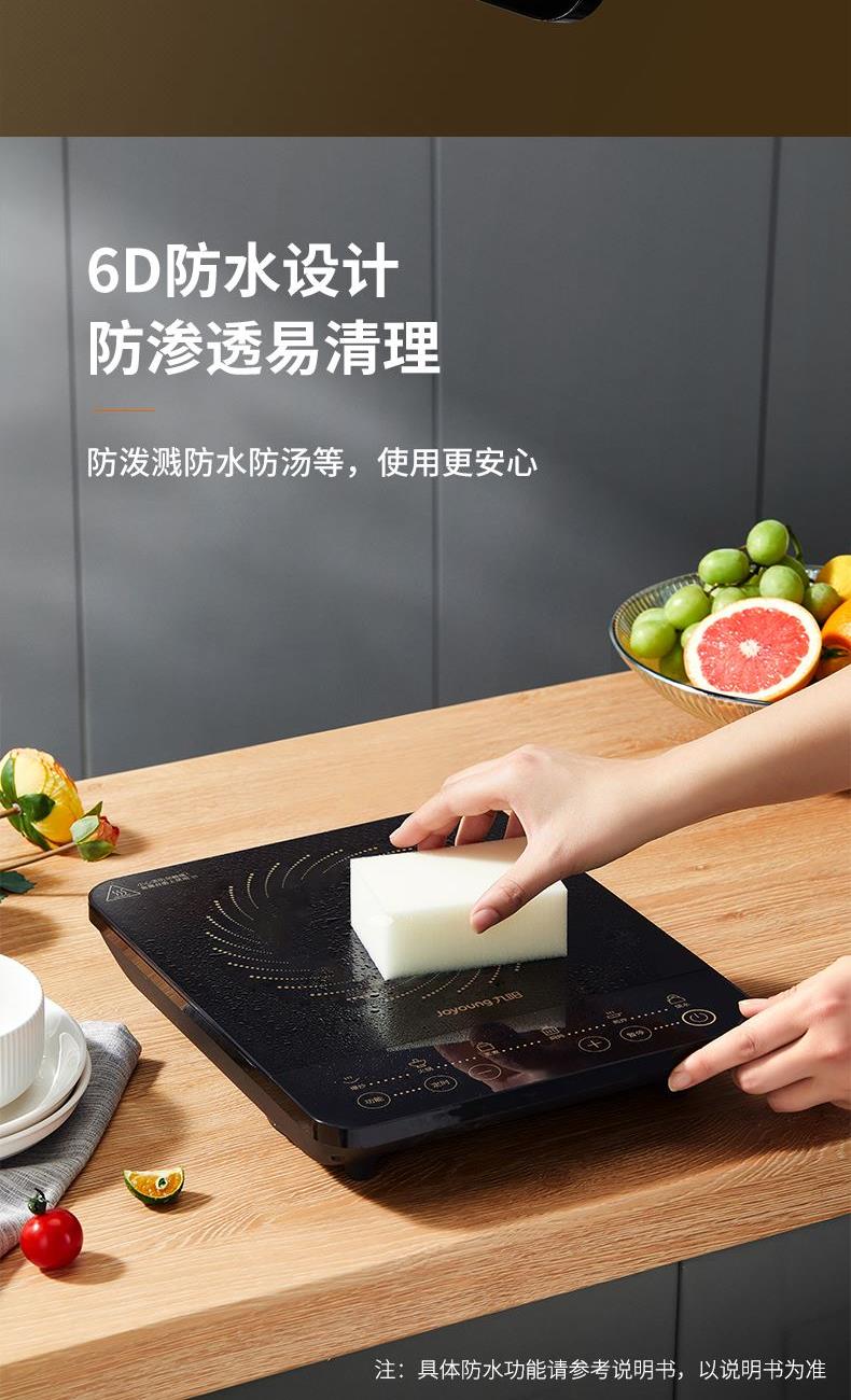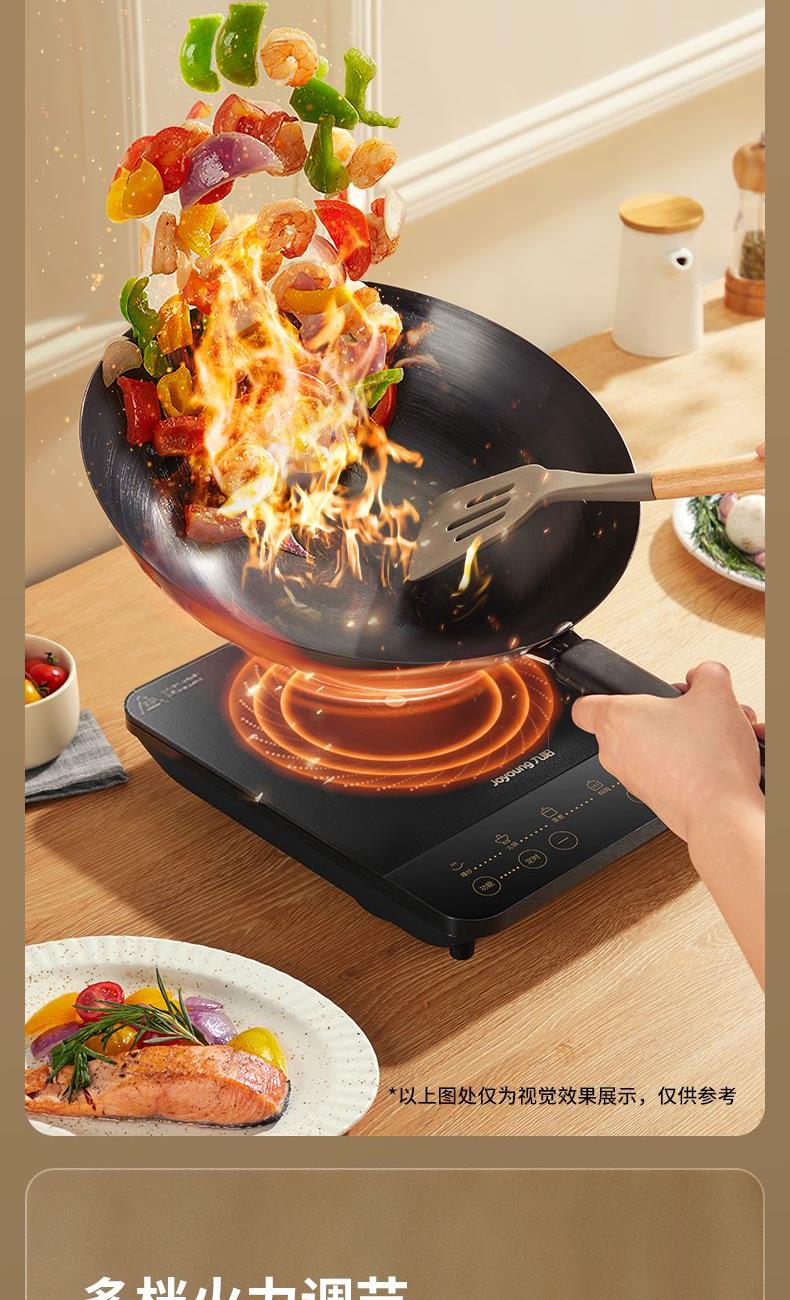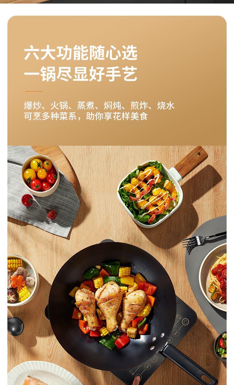 "1、功能:爆炒、火锅、蒸煮、焖炖、煎炸、烧水; 2、3位数码显示,10档大火力; 3、黑晶面板,触控操作; 4、3级能效,多重防水; 5、功率2200W。"