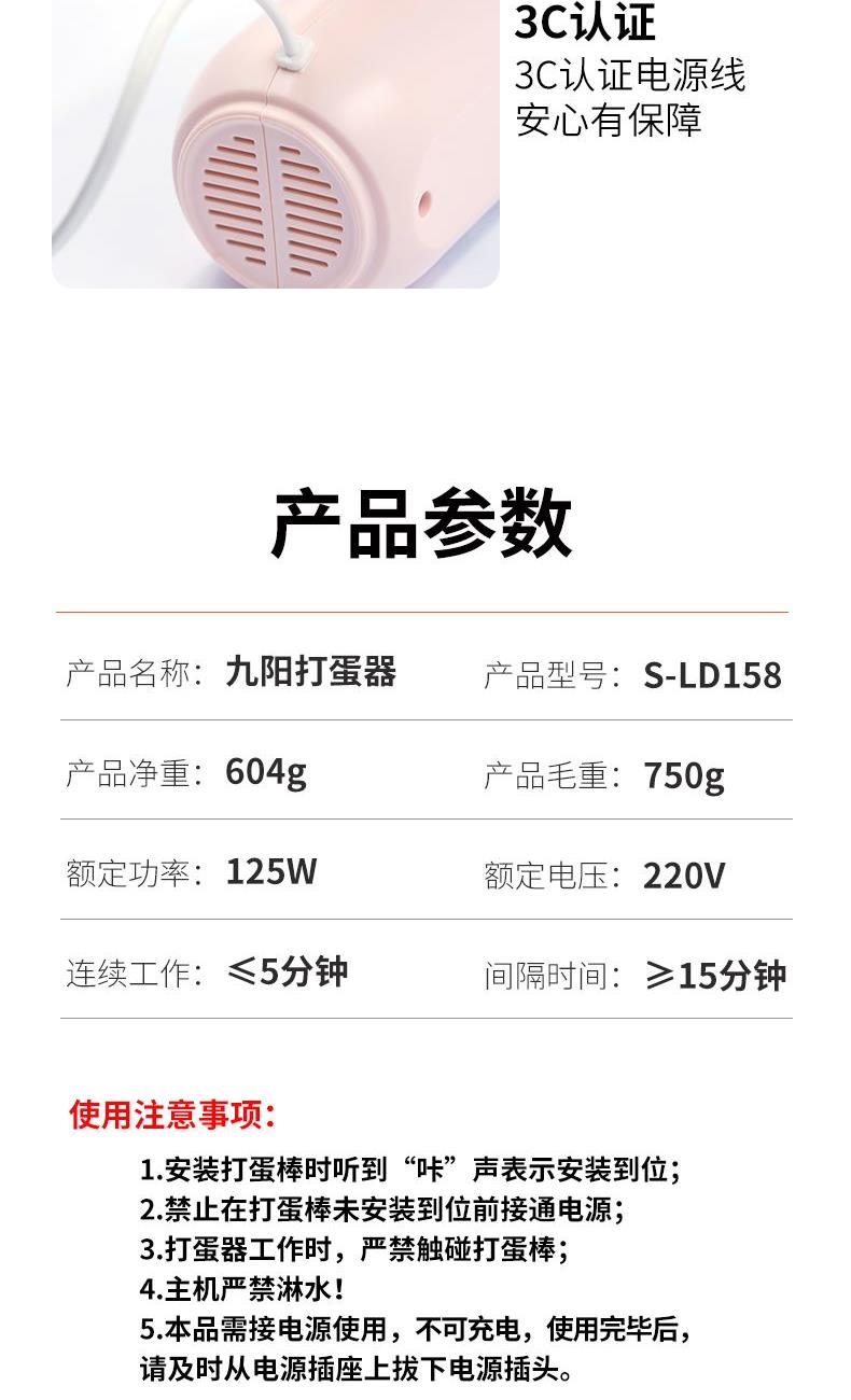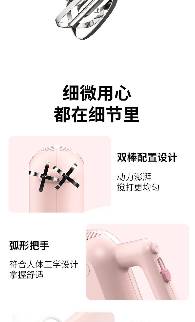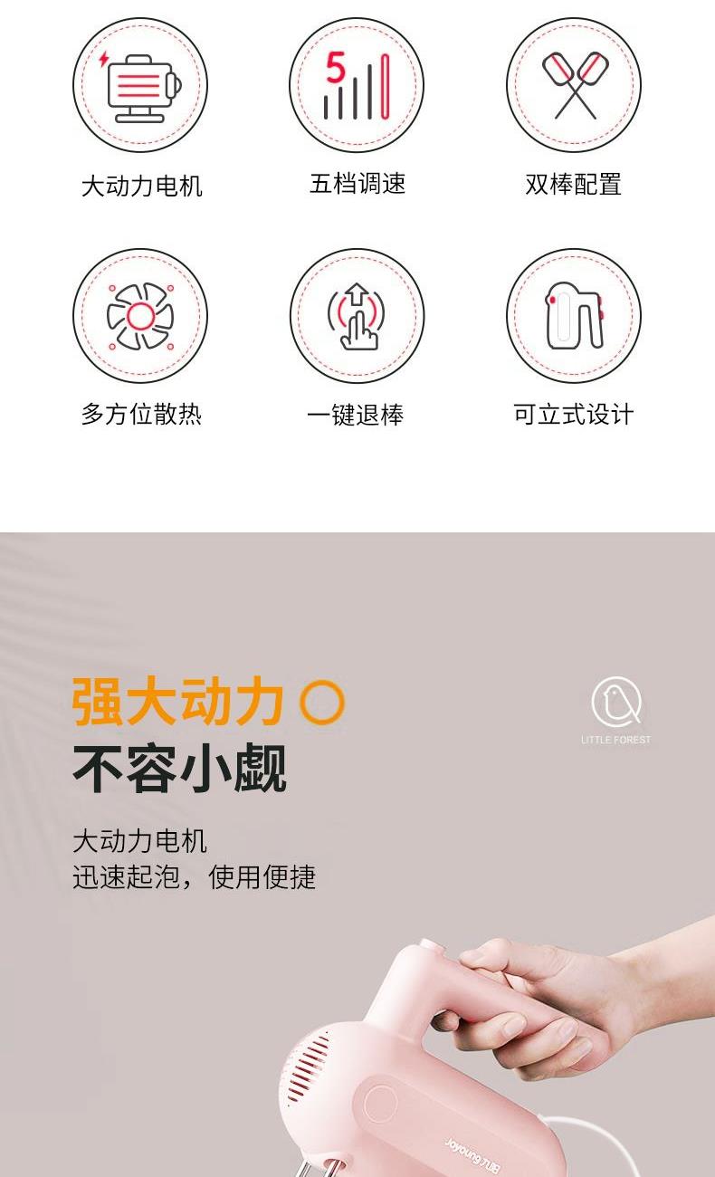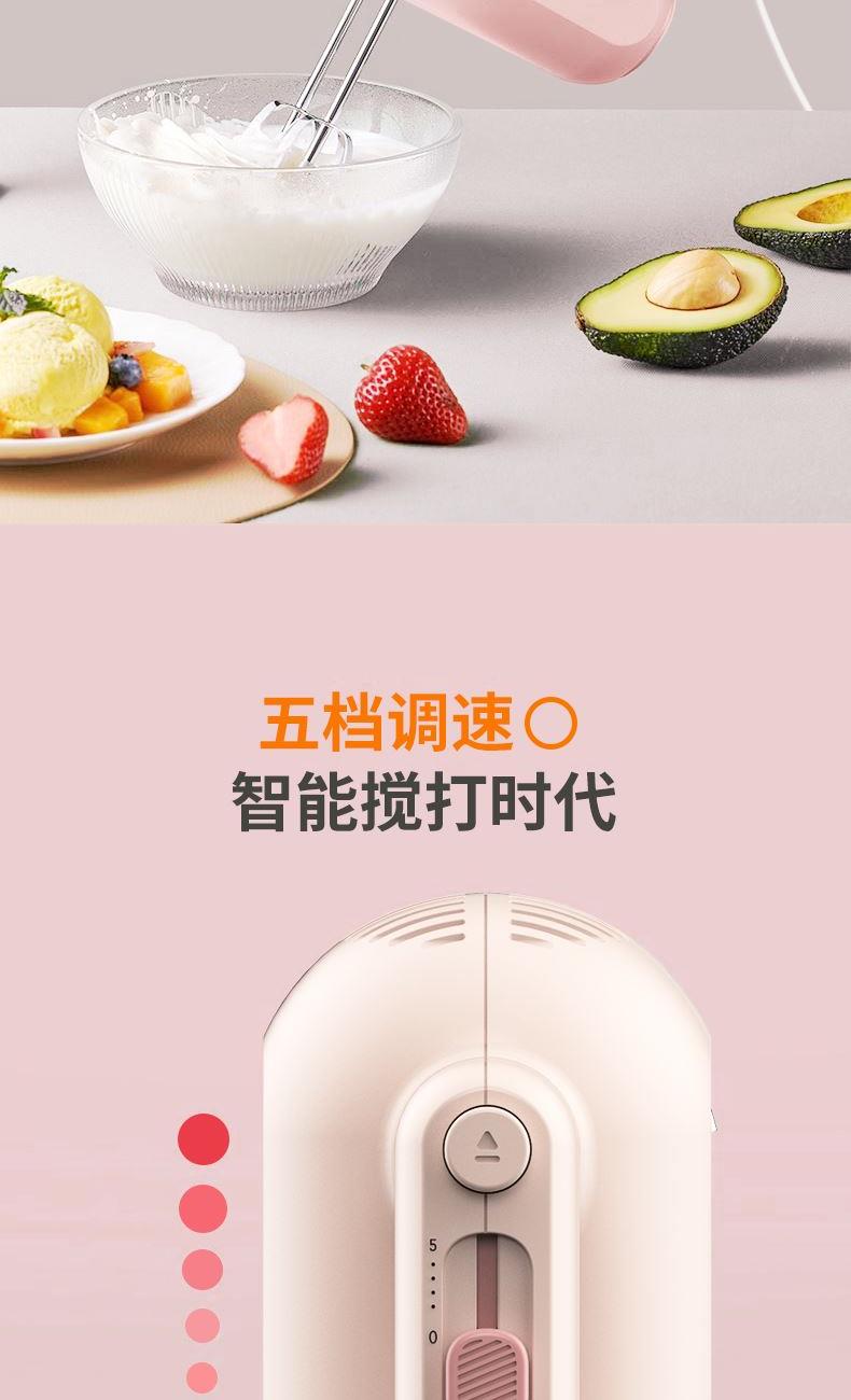 "1、双头配置,双倍动力; 2、大动力电机,快速起泡; 3、五档调速,快慢随心; 4、一键退棒,轻松装卸; 5、可立设计,不脏桌面; 6、转速1350转/分,功率125W。"