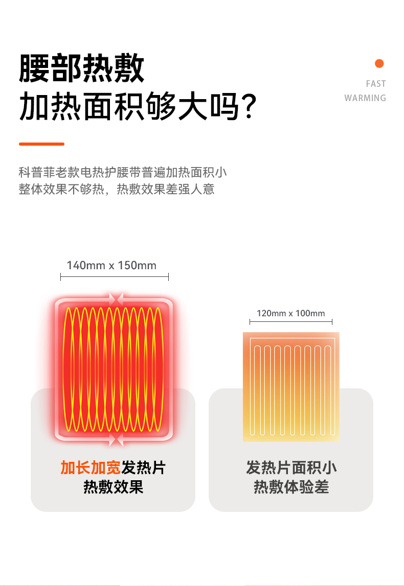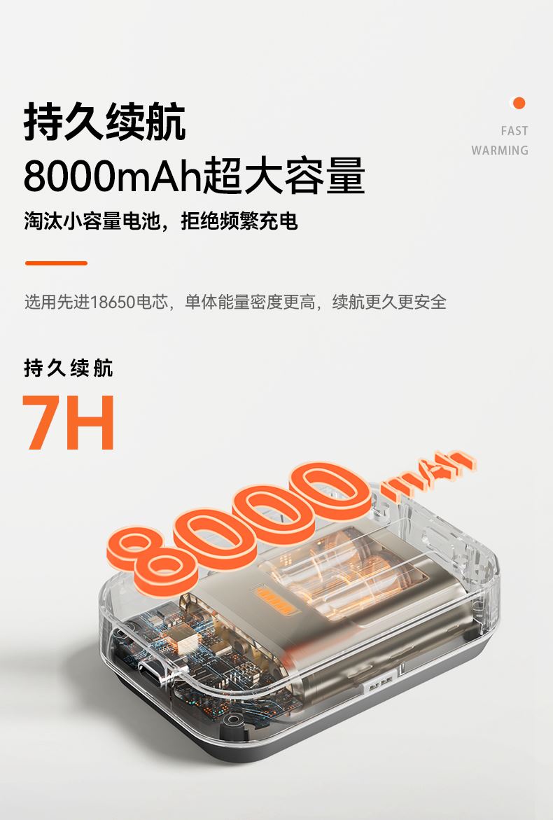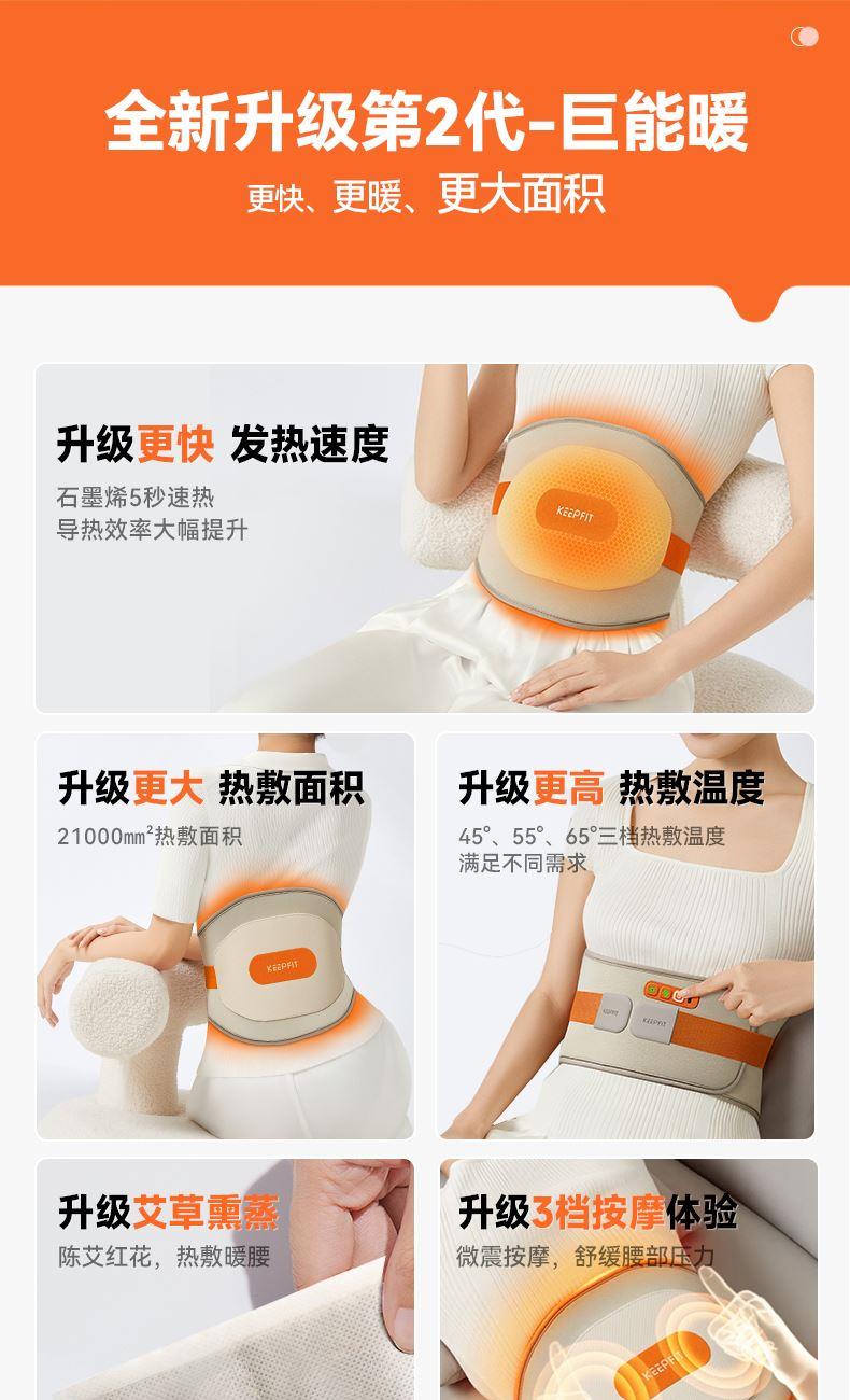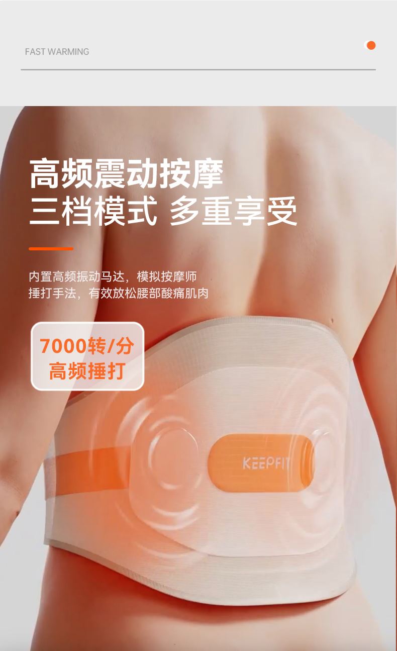 主打艾灸热敷 【大面积热敷】:石墨烯发热片 5秒速热,发热面积高达21000mm²,腰部全覆盖 【药草滋养】:陈艾红花 艾灸熏蒸,暖腰祛湿 【高频震动】:高频震动马达7000转/分,三档模式,多重享受 【超长续航】:8000毫安超大容量,无需频繁充电。