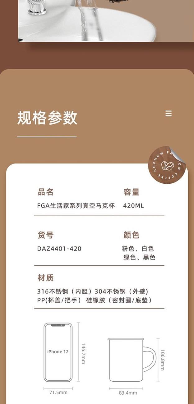 尺寸:8.3*10.6cm 重量210g 材质:316不锈钢内胆材质,超轻无缝一体成型。 可拆卸硅胶圈防尘盖,硅胶杯底防滑耐磨。 包装:单瓦盒