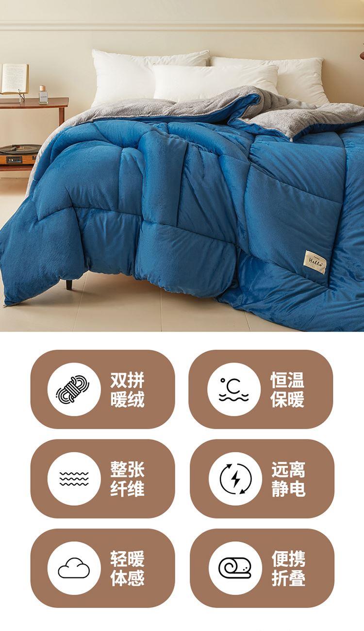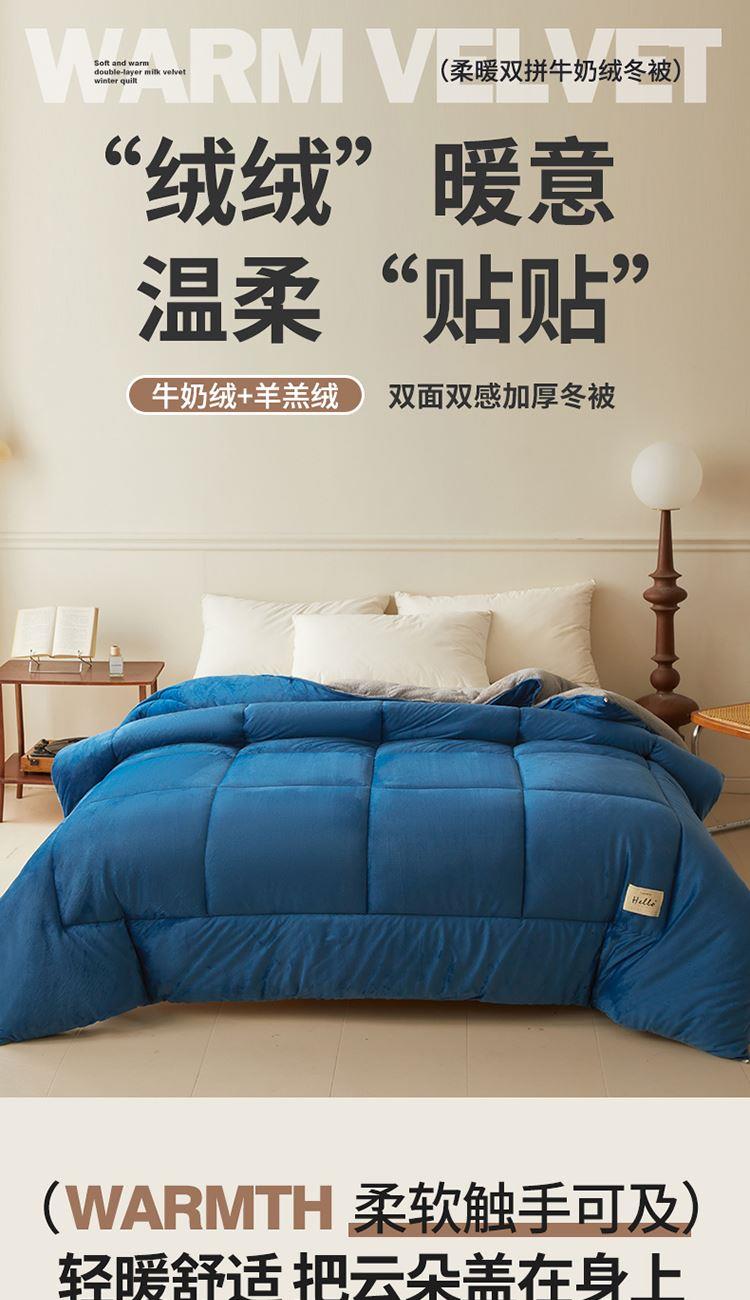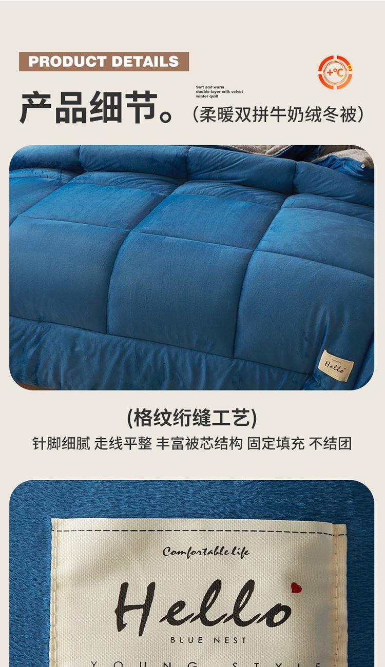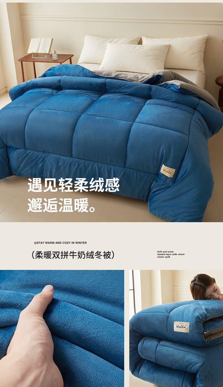 花花公子-家纺-柔暖双拼牛奶绒加厚冬被被芯